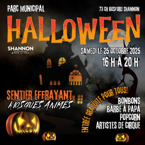 La tradition se poursuit! Rendez-vous samedi 25 octobre 2025 au Parc municipal de Shannon (73, chemin de Gosford) pour une soirĂ©e pleine de surprisesâŠ