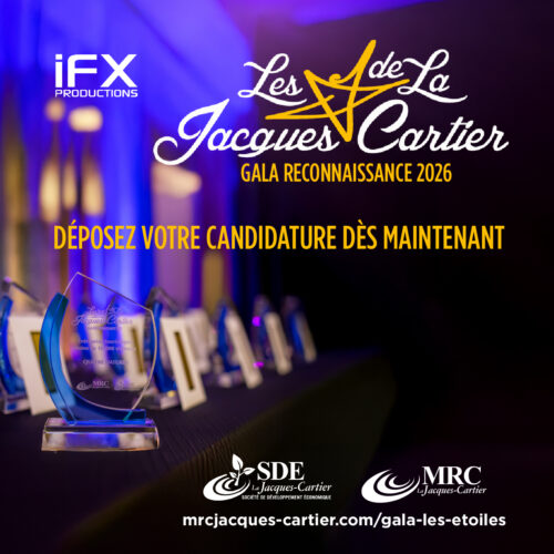 Les mises en candidature de la 5e édition du gala reconnaissance, les Étoiles de La Jacques-Cartier sont lancées ! Déposez votre candidature dès maintenant dans l’une des 15 catégories.