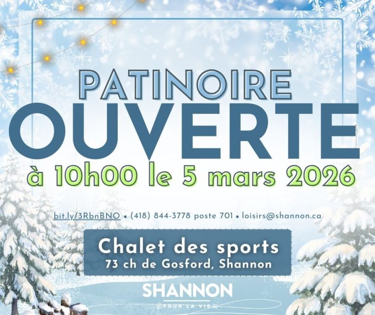 ⛸️ MISE À JOUR – PATINOIRE DE SHANNON – 5 mars 2026 ⛸️